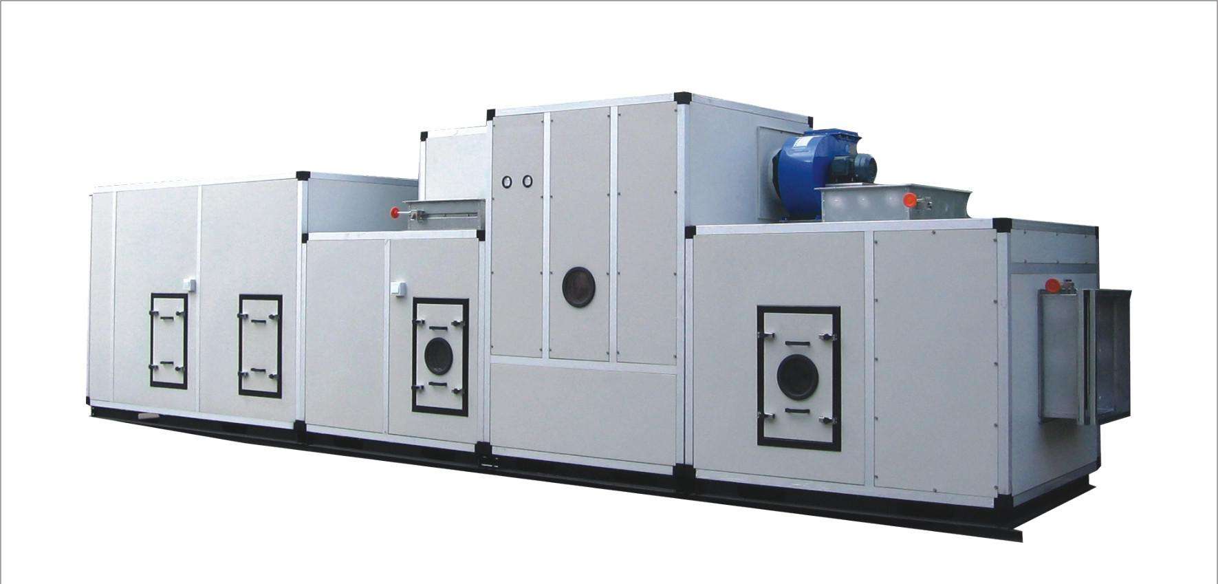 轉輪式除濕機是采用空氣固體吸附的轉盤式金屬硅膠吸附體。在除濕過程中,吸附轉盤在驅動裝置帶動下緩慢轉動,當吸附轉盤在處理空氣區域吸附水分子達到飽和狀態后,進入再生區域由高溫空氣進行脫附再生,這一過程不斷周而復始,干燥空氣連續的經溫度調節后送入指定空間,達到高精度的溫濕度控制。